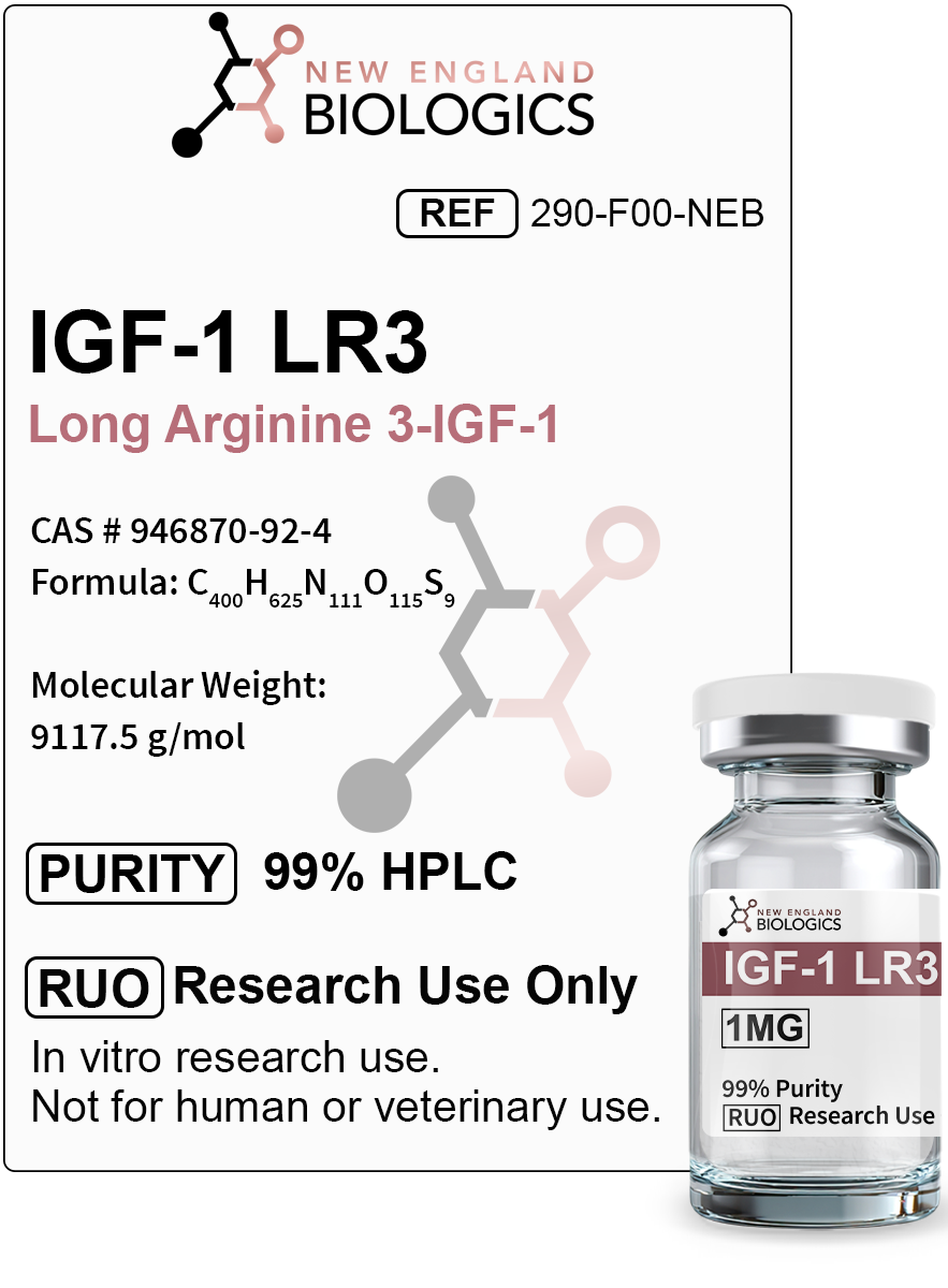 The peptide was originally developed for cell culture applications to accelerate cell proliferation in laboratory research. However, subsequent investigation revealed its potential therapeutic value in conditions characterized by protein catabolism, muscle wasting, impaired tissue repair, and metabolic dysfunction. Unlike native IGF-1, which requires frequent administration due to its short half-life and extensive IGFBP binding, IGF-1 LR3's enhanced stability and bioavailability make it a more practical candidate for investigating growth factor-mediated tissue regeneration and metabolic regulation.